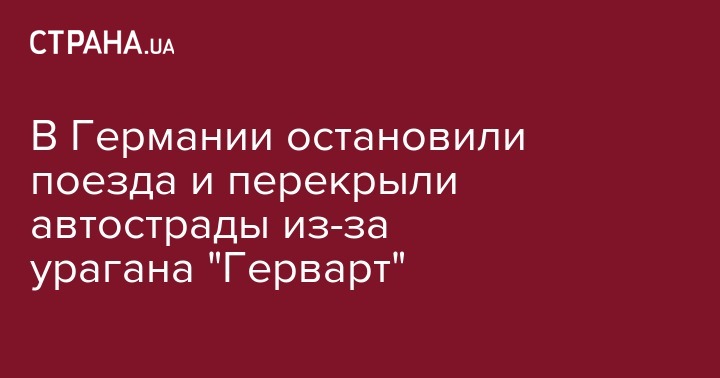 В Германию пришел новый мощный ураган "Герварт", в результате чего временно остановлено движение поездов почти по всей стране и перекрыты автострады. Об этом сообщает Bild.