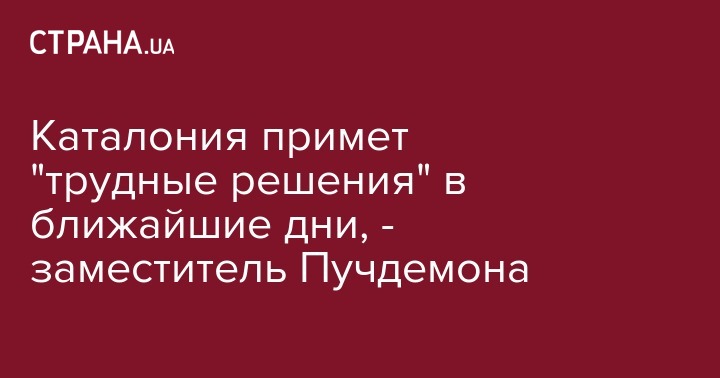 Каталония примет "трудные решения" в ближайшие дни, - заместитель Пучдемона