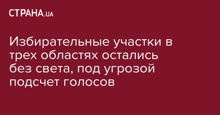 "В помещениях для голосования на избирательных участках в Сколевском районе исчезла электроэнергия. Такую ситуацию наблюдатели ОПОРЫ зафиксировали в селах Ялынковатое и Хащованое. Без света продолжает работать и ТИК в Рудках Самборского района. Кроме этого, в Ривненской области на УИК №560157 (с. Лишня Демидовского района) и УИК №560158 (с. Дубляны Демидовского района) и в помещении Демидовской поселковой избирательной комиссии периодически исчезает электроснабжение. Без света работают в населенных пунктах (Закарпатской обл. - ред.) Долгое Поле (УИК № 21 0554), Ярок (УИК № 210574), Стрипа (УИК № 210575) и Холмец (УИК № 210587). Не было электроэнергии и в селе Подгорб (УИК №210555), но на данный момент электроснабжение уже возобновлено", - говорится в сообщении.