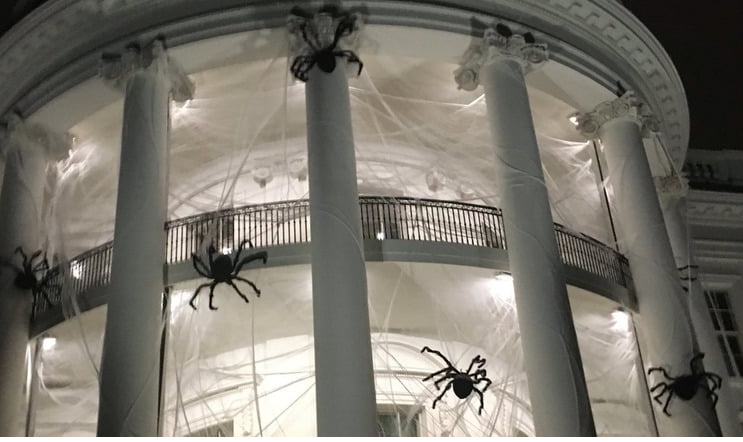 Белый дом украсили искусственной паутиной и гигантскими пауками в честь Хэллоуина, который сегодня отпразднуют в Вашингтоне. Первая леди США обнародовала фото декора в Instagram, отметив, что уже все готово, чтобы отметить праздник.