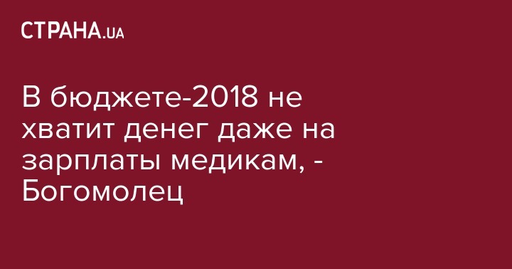 Глава парламентского комитета по вопросам здравоохранения, нардеп Ольга Богомолец (БПП) заявила, что расходы на медицину в бюджете 2018 не покроют даже зарплаты медикам. Об этом Богомолец написала в Facebook.