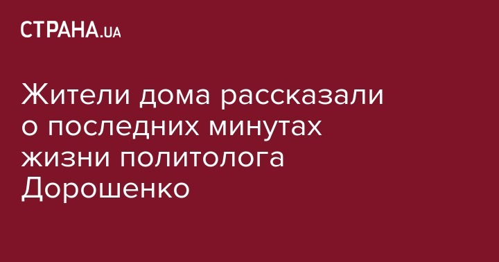 Жильцы киевской многоэтажки, из которой выпал политолог Андрей Дорошенко, рассказали  о последних минутах жизни мужчины. Андрей Дорошенко не жил в этом доме, а в подъезд вошел, позвонив в домофон.