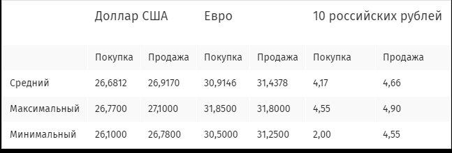 Напомним, что по официальному курс от Нацбанка, доллар подорожал на 5 копеек, его курс на сегодня 26,87 грн. Евро подешевел на 34 копейки и составил 31,18 грн.