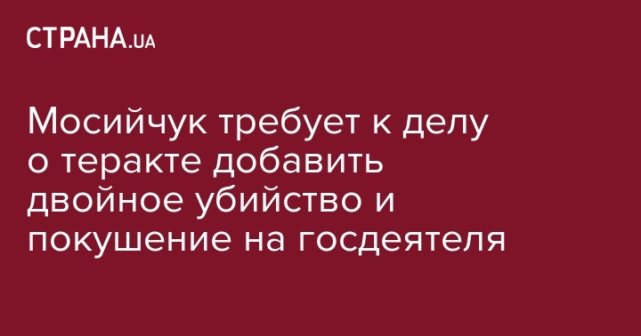 "Уже сейчас мои помощники и адвокаты готовят обращение на следователей по дополнительной квалификации преступления как двойное убийство, так, как погибли два человека, кроме террористического акта, и как покушение на государственного деятеля, что предполагает пожизненное заключение как результат наказания", - сказал Мосийчук.
