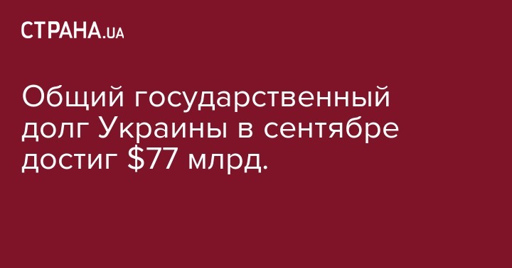 Общий государственный долг Украины в сентябре достиг $77 млрд.