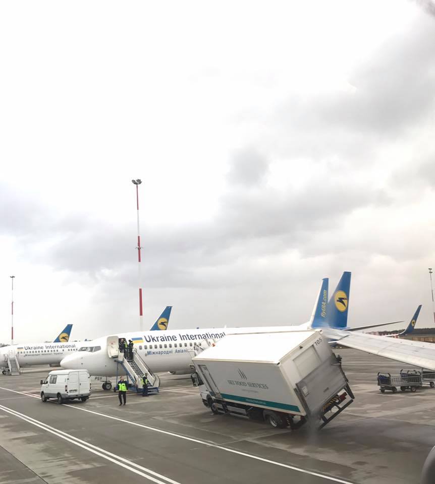 Ранее "Страна" сообщала, что рейсы задерживаются потому что "Борисполе" грузовик протаранил авиалайнер. Фото.