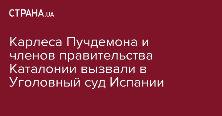 Президента Женералитата Каталонии в 2016-2017 годах и одного из лидеров процесса односторонней независимости Каталонии Карлеса Пучдемона вызвали в испанский уголовный суд, передает The Straits Times.
