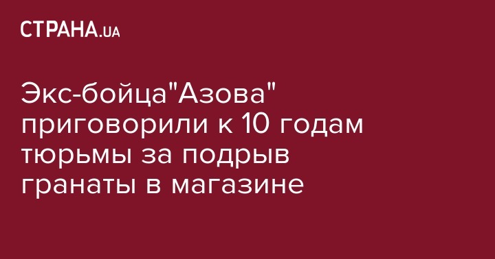 Экс-бойца полка "Азов" приговорили к 10 годам тюрьмы. Он признан виновным в подрыве гранаты в магазине в Киевской области. Также установлено, что 37-летний мужчина по окончанию службы в АТО оставил себе 9 гранат и другие военно снаряжение.
