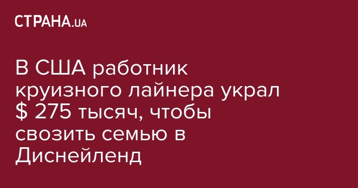 В США работник круизного лайнера украл $ 275 тысяч, чтобы свозить семью в Диснейленд