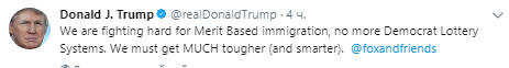 "Мы боремся за основанную на заслугах иммиграцию, больше не будет демократических лотерейных систем. Мы должны стать намного более жесткими и умными", — написал Трамп.