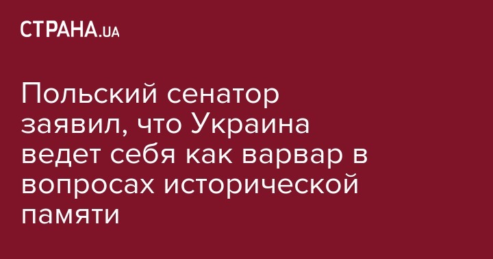 Польский сенатор Ян Жарин заявил, что Украина ведет себя как варвар в вопросах исторической памяти. Об этом пишет wPolityce.
