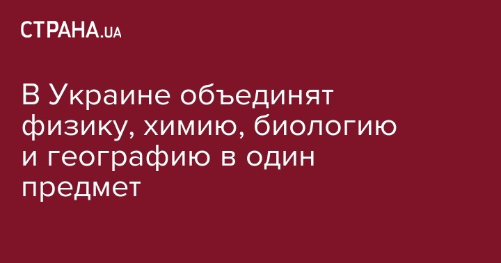 В Министерстве образования и науки Украины занимаются проектом по объединению в один предмет физики, химии, биологии и географии. Предполагается, что новый предмет заменит вышеперечисленные в программах для старших классов гуманитарного направления, заявила министр образования Лилия Гриневич во время визита в Одессу, сообщает "Таймер".