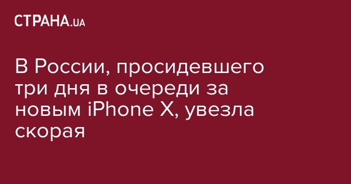 Молодого человека, простоявшего три дня в очереди за новым iPhone X на Тверской улице в Москве, увезли на скорой помощи в больницу, сообщает RNS.