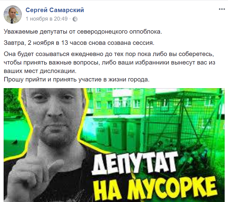 Одним грозил "мусоркой", другим - публикацией личных данных тех депутатов и чиновников, которые, по мнению Самарского, "загоняют город в пропасть".