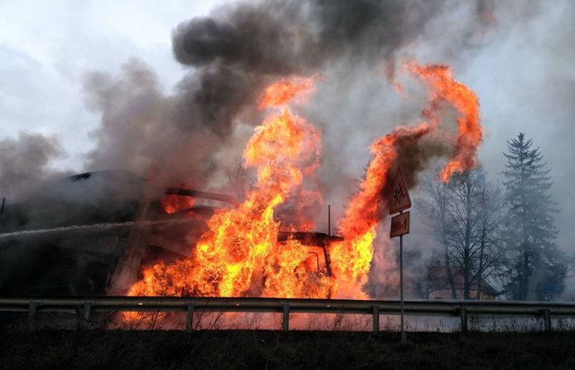 "Пожар начался около 12.35 возле села Белая Криница. Причиной возгорания, по предварительной версии, стало столкновение двух тяжелых грузовиков, перевозивших новые автомобили", – сообщила Елена Гуменюк, пишет "Сегодня".
