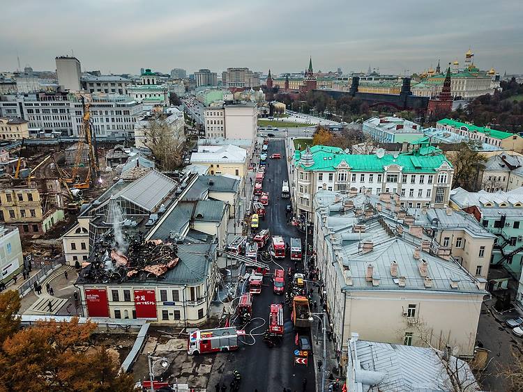 Появились фото и видео пылающего Музея им. Пушкина в Москве