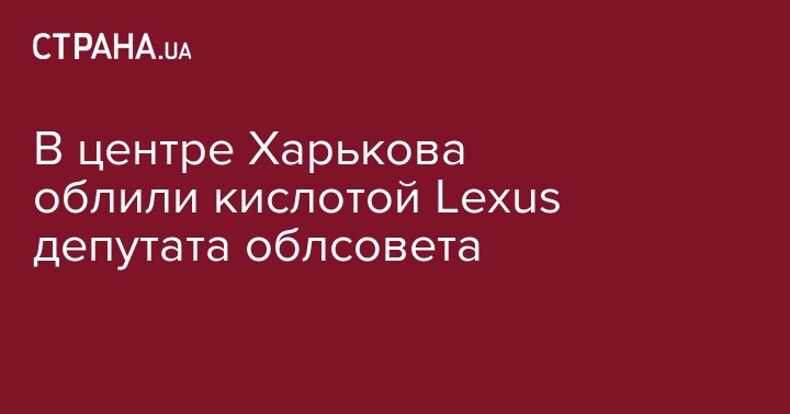 В ночь на 2 ноября в центре Харькова на улице Культуры неизвестные облили кислотой внедорожник Lexus, который принадлежит депутату областного совета. Об этом сообщает пресс-служба полиции области.