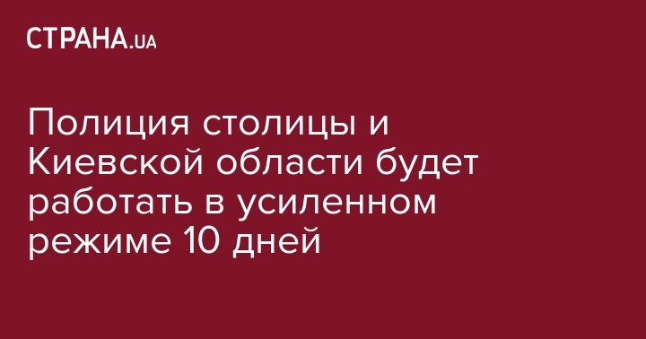 Личный состав Главных управлений Национальной полиции Украины в Киеве и Киевской области перешел на усиленный вариант несения службы и будут работать в таком режиме в течение 10 дней.
