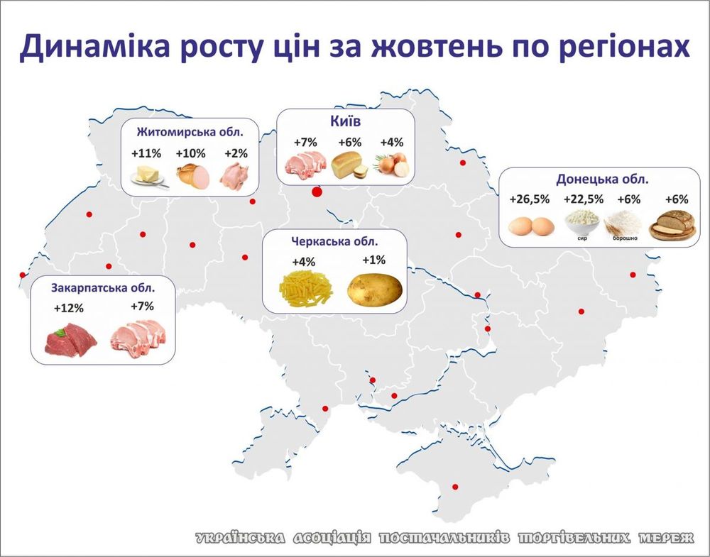 Об этом свидетельствуют данные Госкомстата в октябре, с 29 сентября по 30 октября, по регионам, которые привел председатель союза ассоциации поставщиков торговых сетей Алексей Дорошенко в социальной сети Facebook.