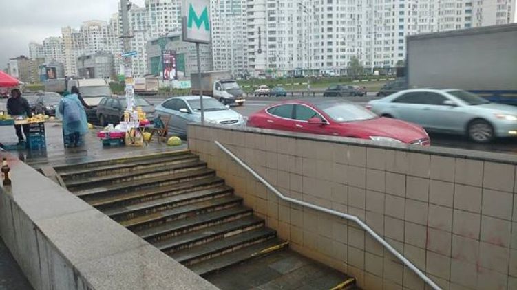 Пользователь соцсети лично убедился в том, что красная Tesla стоит у подземного перехода, а водитель спокойно продает мед с лотка.