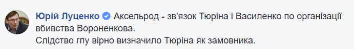 Под этим комментарием Мосийчука генпрокурор Юрий Луценко сделал неожиданное заявление. Мол, Аксельрод - "связной" в деле убитого экс-депутат Госдумы Дениса Вороненкова. Якобы именно "Эдик Лепа" обеспечивал связь между заказчиком убийства - российским авторитетом Владимиром Тюриным - и организатором Юрием Василенко (сейчас в розыске).