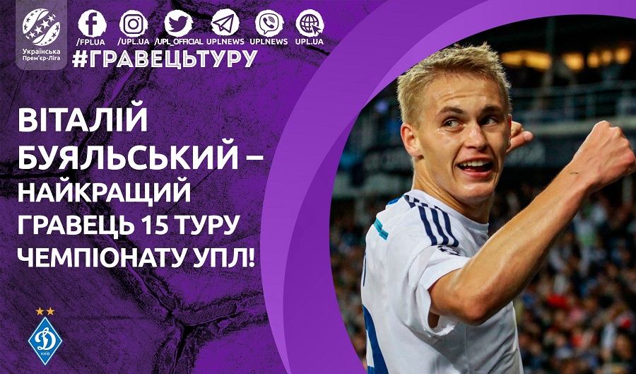 По итогам голосования победу одержал полузащитник Динамо Виталий Буяльский, прекрасно проведший матч с Ворсклой. Он вдвое опередил нападающего ФК Мариуполь Руслана Фомина", - заявили в пресс-службе УПЛ.