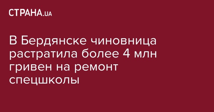 "По результатам проведенного предварительного расследования, директору гражданке Л. предъявлено обвинение по ч.5 ст.191 УК Украины по факту растраты бюджетных средств на общую сумму более 4,2 млн грн во время выполнения строительных работ на объекте "Бердянская специализированная школа №16", – сообщили в ведомстве.
