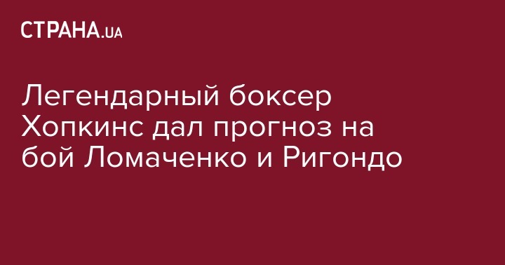 По мнению 52-летнего Хопкинса, Ломаченко удастся отправить оппонента в нокаут. "Ломаченко победит и сделает это нокаутом в поздних раундах. Ригондо слишком мал, чтобы противостоять другому талантливому бойцу, который намного больше", - сказал Хопкинс.