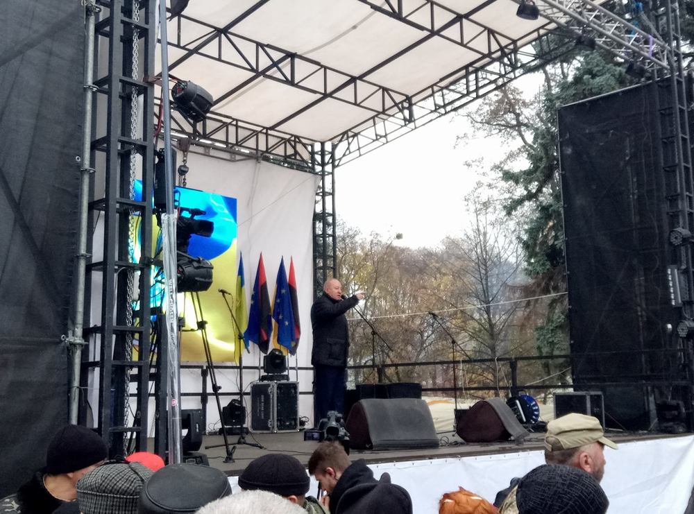 10:51  Нардеп Юрий Деревянко на сцене. "За эти три недели, что мы тут стоим, выяснилось, что сын министра может грабит страну и армию, продавая втридорога рюкзаки".