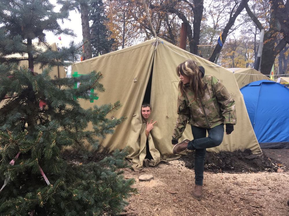10:34  - Сегодня все серьезно будет. Ориентир на восстание, - говорит мужчина в военной форме, который сторожит вход на сцену. - В смысле восстание? Свержение власти? - Именно восстание. Мы сегодня выберем новый, конкретный ориентир для восстания. А не эти все "неприкосновенности", "импичменты". Восстание есть восстание.