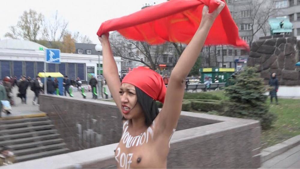 В этот знаменательный день Фемен призвал пролетариев свергнуть ненавистную династию царя Порошенко и цесаревича Гройсмана. "Раздавим шоколадную гидру - скандировала секстремистка. Пролетарии всех стран, соединяйтесь".