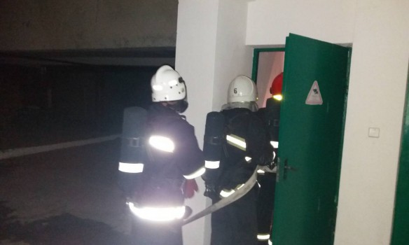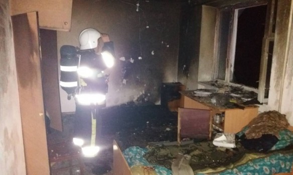 После эвакуации спасатели приступили к тушению пожара в одной из комнат общежития, который на тот момент распространился на площади в 12 кв.м. Из-за сильного задымления пожарным пришлось работать в противогазах.