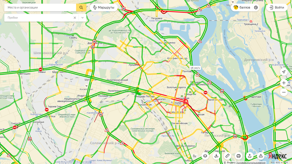 Уровень пробок по состоянию на 13:40 составляет 5 баллов.