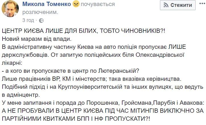 Вероятно, ограничения в Киеве связаны с началом парламентской недели и активизацией МихоМайдана.