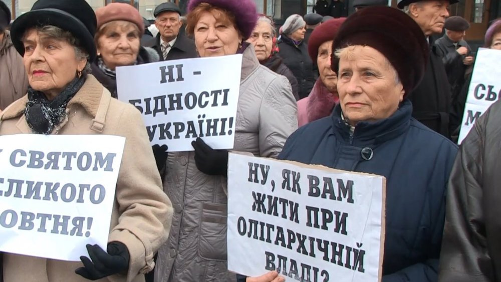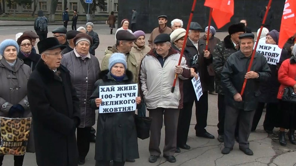 Они собрались в центре города с красными флагами и красноречивыми плакатами. Участники акции тосковали по прошлому, сетовали на нынешнюю власть и цитировали Шевченко.