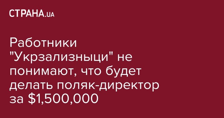 Обещанная поляку зарплата в 1,5 млн. долларов в год (включая бонусы) действует на сотрудников "Укрзализныци" убийственно. Некоторые к этой информации (официально озвученной, кстати) относятся примерно как к новости о высадке инопланетян на заднем дворе Администрации президента. То есть, отказываются верить. Другие уже слышали о цифре, но не понимают за что такие огромные деньги будут платить поляку.