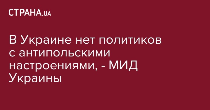 В Украине нет политиков с антипольскими настроениями, - МИД Украины
