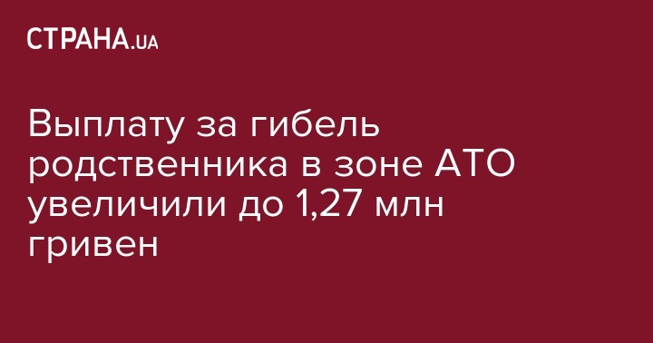 Таким образом с декабря одноразовая помощь за гибель родственника в зоне АТО составит 1 275 000 гривен.
