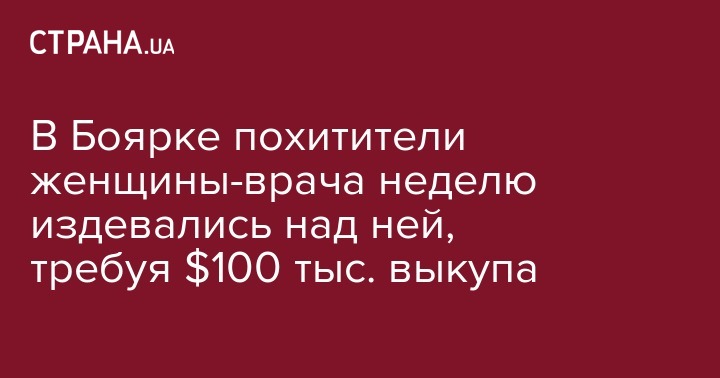 В Боярке похитители женщины-врача неделю издевались над ней, требуя $100 тыс. выкупа