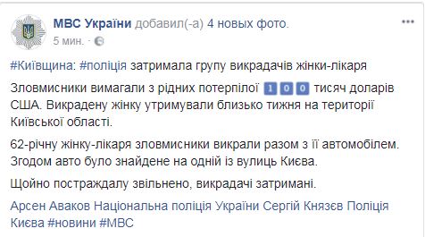 Похитителей 62-летней женщины-врача, жительницы Боярки Киевской области задержала полиция.