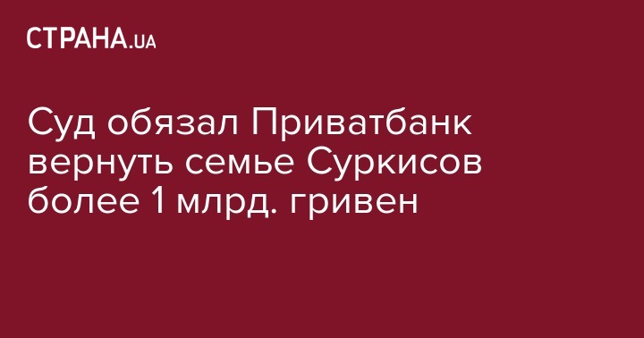 Киевский апелляционный административный суд обязал Приватбанк вернуть семье Суркисов 1,05 миллиарда гривен, 266,2 тысячи долларов и 7,8 тысячи евро.