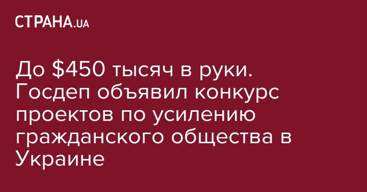 До $450 тысяч в руки. Госдеп объявил конкурс проектов по усилению гражданского общества в Украине
