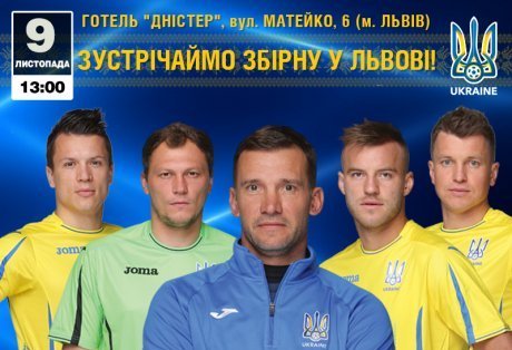 "Сине-желтые" приглашают всех желающих прийти в гостиницу "Днестр" в четверг, 9 ноября в 13:00 (ул. Матейко, 6), чтобы поздравить любимую команду. Не пропустите уникальную возможность встретиться со своими кумирами, получить автограф и сфотографироваться с игроками национальной сборной", - заявили в пресс-службе ФФУ.