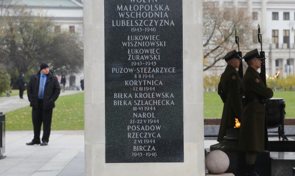 В частности, они касаются солдат, защищавших местную польскую общину ОУН и УПА. На табличках написаны названия городов и даты сражений между поляками и подразделениями ОУН и УПА на Волыни, в Восточной Малопольше и в Люблинском воеводстве.