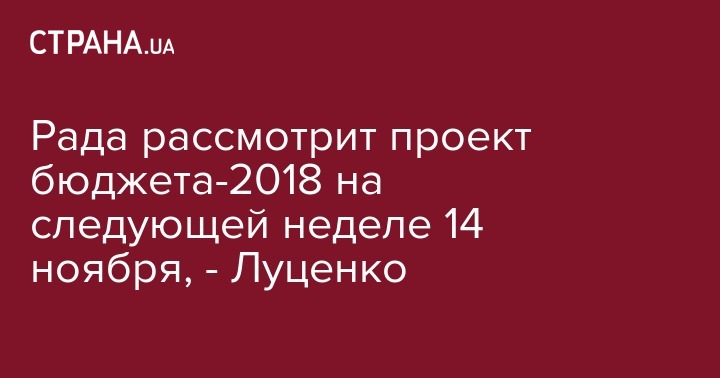 Рада рассмотрит проект бюджета-2018 на следующей неделе 14 ноября, - Луценко