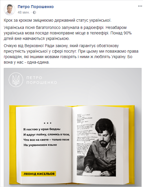 К посту прикреплена цитата из стиха Леонида Киселева, что "все на свете - только песня на украинском языке".