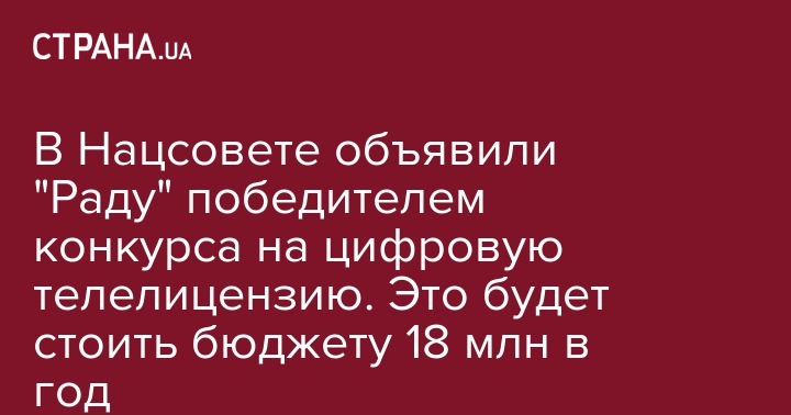 Победа телеканала "Рада" в конкурсе будет стоить госбюджету около 18 млн грн в год. Именно во столько обойдется поддержание цифрового вещания, то есть более 125 млн грн на весь срок лицензии.