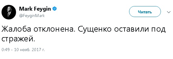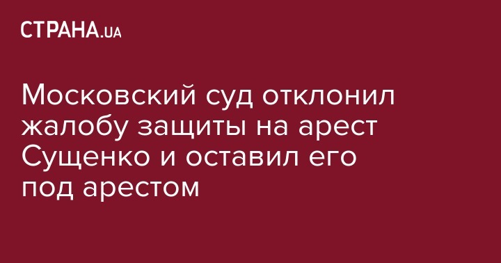 "Жалоба отклонена. Сущенко оставили под стражей", - говорится в сообщении.