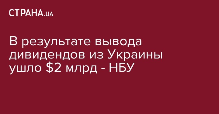 В результате вывода дивидендов из Украины ушло $2 млрд - НБУ