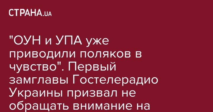 "ОУН и УПА уже приводили поляков в чувство". Первый замглавы Гостелерадио Украины призвал не обращать внимание на претензии Польши